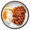 Белый рис под соусом «Донтарэ», кусочки вареной в соевом соусе нежной свинины Тясю, кунжут и зеленый лук.